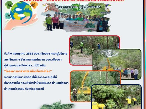 วันที่ 9 กรกฎาคม 2568 อบต.เชียงดา คณะผู้บริหาร สมาชิกสภาฯ ข้าราชการพนักงาน อบต.เชียงดาผู้นำชุมชนและจิตอาสา…ได้ดำเนิน“โครงการอาสาสมัครท้องถิ่นรักษ์โลก”พัฒนาทัศนียภาพตัดกิ่งไม้ข้างทางและกิ่งไม้ที่พาดสายไฟ ทางเข้าป่าช้าบ้านเชียงดา ตำบลเชียงดาอำเภอสร้างคอม จังหวัดอุดรธานี