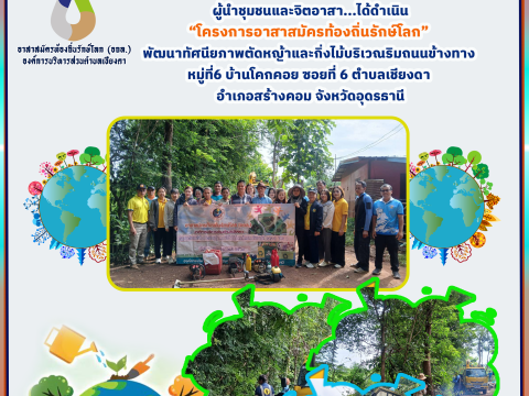 วันที่ 1 สิงหาคม 2568 อบต.เชียงดา ได้ดำเนิน“โครงการอาสาสมัครท้องถิ่นรักษ์โลก”พัฒนาทัศนียภาพตัดหญ้าและกิ่งไม้บริเวณริมถนนข้างทาง หมู่ที่6 บ้านโคกคอย ซอยที่ 6 ตำบลเชียงดา อำเภอสร้างคอม จังหวัดอุดรธานี