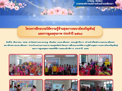 วันที่19 สิงหาคม 2568 นำโดยนายมนู พันธ์ดง นายก อบต.เชียงดา คณะผู้บริหาร เจ้าหน้าที่พนักงานอบต.เชียงดา สมาชิกสภาอบต.เชียงดา ร่วมกับหน่วยงานสาธารณสุขจัดทำโครงการฝึกอบรมให้ความรู้ด้านสุขภาวะอนามัยเจริญพันธุ์ และการดูแลสุขภาพสตรีพิการและเด็กพิการ ประจำปี 2568