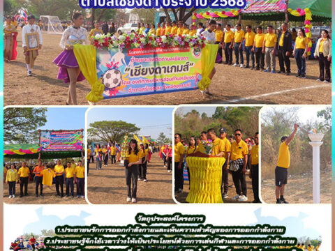 วันที่ 15 กุมภาพันธ์ 2568 องค์การบริหารส่วนตำบลเชียงดา นำโดยท่านนายกมนู พันธ์ดง พร้อมด้วย คณะผู้บริหาร สมาชิกสภา ต.เชียงดา พนักงาน ลูกจ้าง อบต.เชียงดา ผู้นำหมู่บ้านและประชาชนในตำบลเชียงดา ได้เข้าร่วมโครงการแข่งขันกีฬาเยาวชน ประชาชน ตำบลเชียงดา ประจำปี 2568