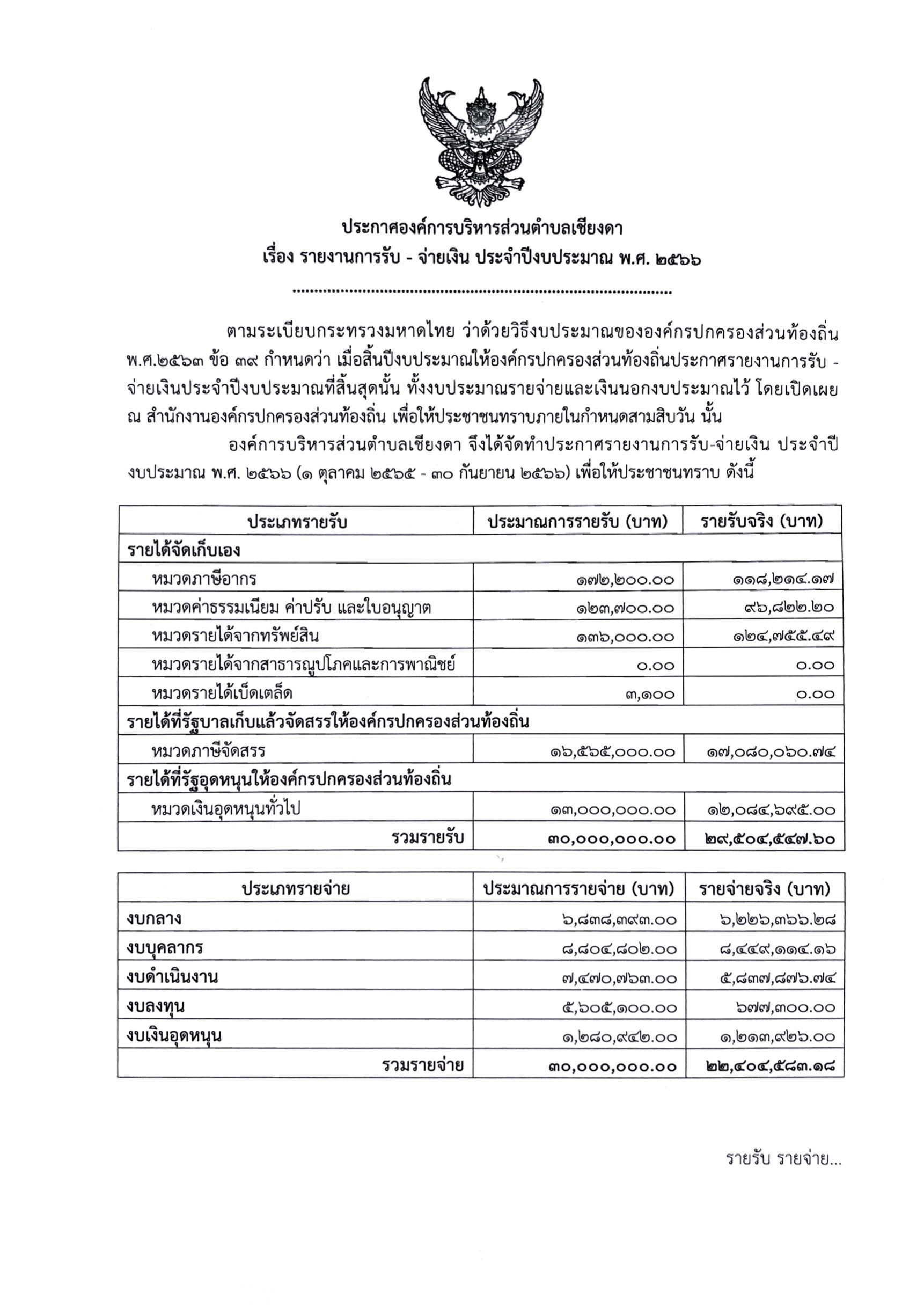 ประกาศ เรื่อง รายงานการรับ-จ่ายเงินประจำปีงบประมาณ พ.ศ.2566