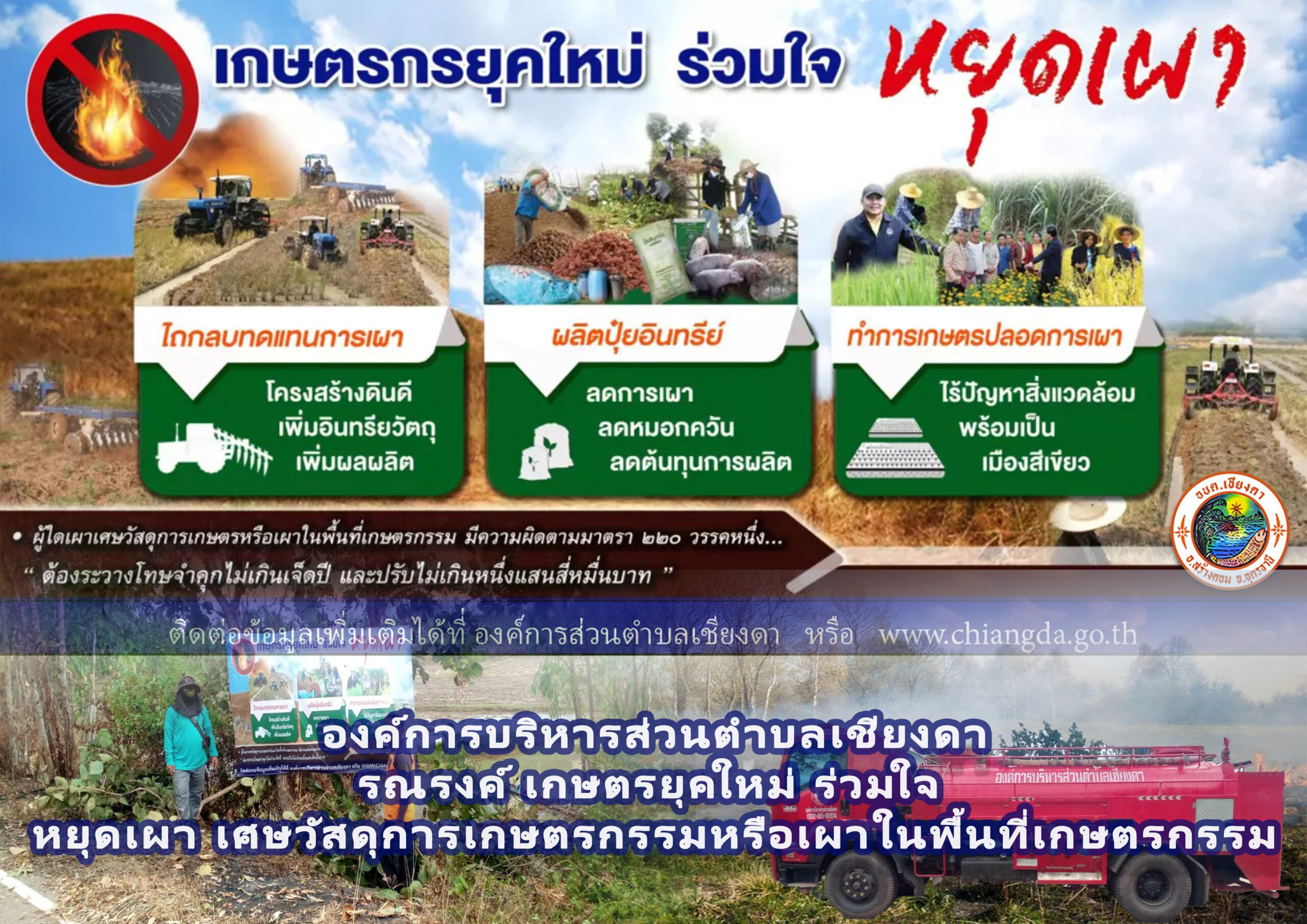 Posted in ข่าวประชาสัมพันธ์ ประชาสัมพันธ์ องค์การบริหารส่วนตำบลเชียงดา รณรงค์ เกษตรยุคใหม่ ร่วมใจ หยุดเผา เศษวัสดุการเกษตรกรรมหรือเผาในพื้นที่เกษตรกรรม Admin