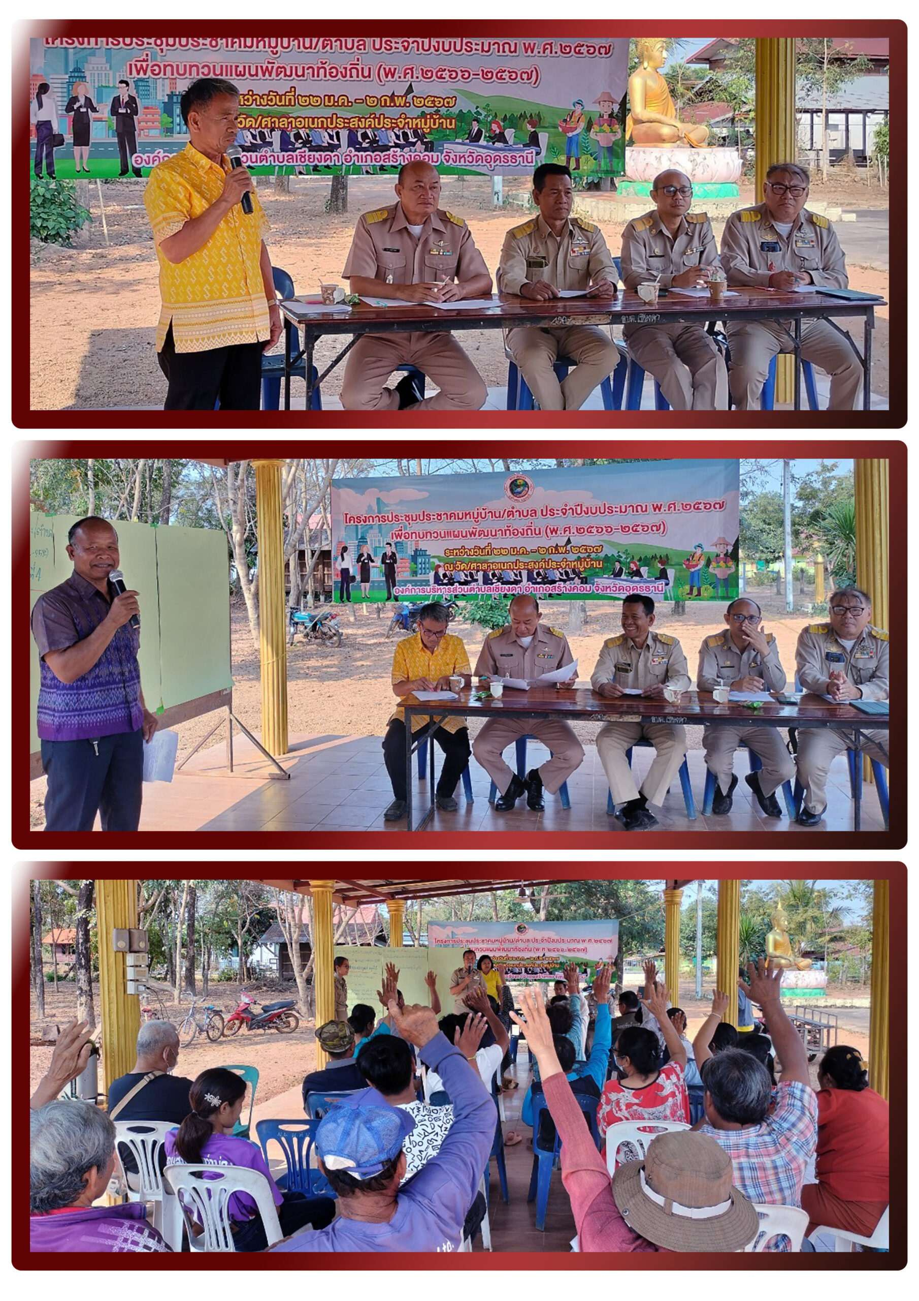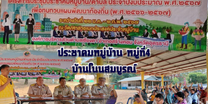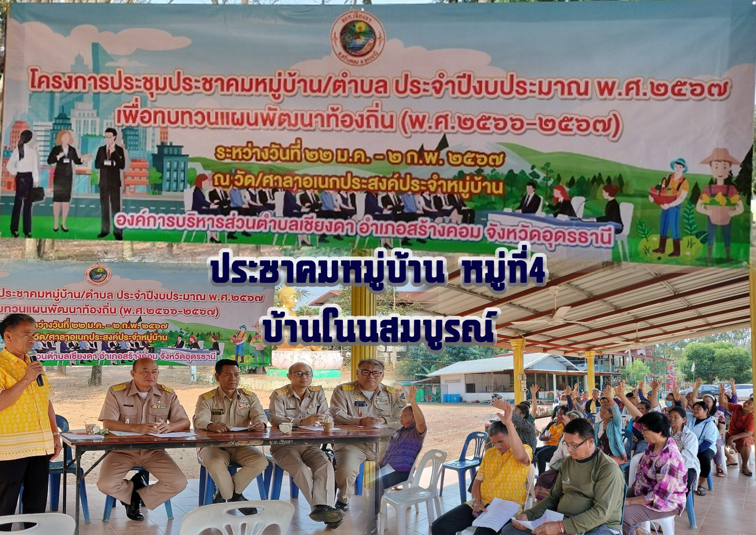 Posted in กิจกรรมและโครงการต่างๆ วันที่ 22 มกราคม 2567 องค์การบริหารส่วนตำบลเชียงดา นำโดยคณะผู้บริหาร ท่านรองนายก ท่านเลขานุการนายก พร้อมทั้งคณะกรรมการพัฒนาองค์การบริหารส่วนตำบลเชียงดา ได้ออกประชาคมหมู่บ้าน หมู่ที่4 บ้านโนนสมบูรณ์ ณ ศาลาอเนกประสงค์ประจำหมู่บ้าน วัดพรสวรรค์ Admin