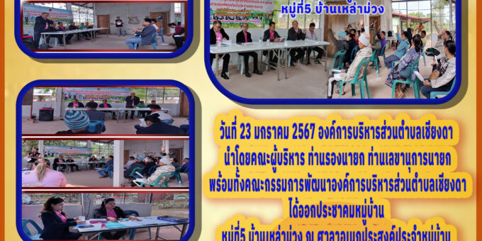 Posted in จดหมายข่าวประชาสัมพันธ์ วันที่ 23 มกราคม 2567 องค์การบริหารส่วนตำบลเชียงดา นำโดยคณะผู้บริหาร ท่านรองนายก ท่านเลขานุการนายก พร้อมทั้งคณะกรรมการพัฒนาองค์การบริหารส่วนตำบลเชียงดา ได้ออกประชาคมหมู่บ้าน หมู่ที่5 บ้านเหล่าม่วง ณ ศาลาอเนกประสงค์ประจำหมู่บ้าน Admin