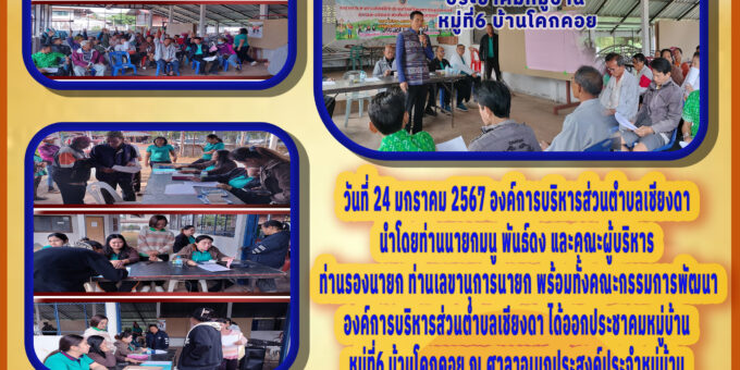 Posted in จดหมายข่าวประชาสัมพันธ์ วันที่ 24 มกราคม 2567 องค์การบริหารส่วนตำบลเชียงดา นำโดยท่านนายกมนู พันธ์ดง และคณะผู้บริหาร ท่านรองนายก ท่านเลขานุการนายก พร้อมทั้งคณะกรรมการพัฒนาองค์การบริหารส่วนตำบลเชียงดา ได้ออกประชาคมหมู่บ้าน หมู่ที่6 บ้านโคกคอย ณ ศาลาอเนกประสงค์ประจำหมู่บ้าน Admin