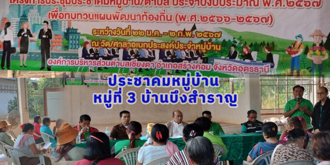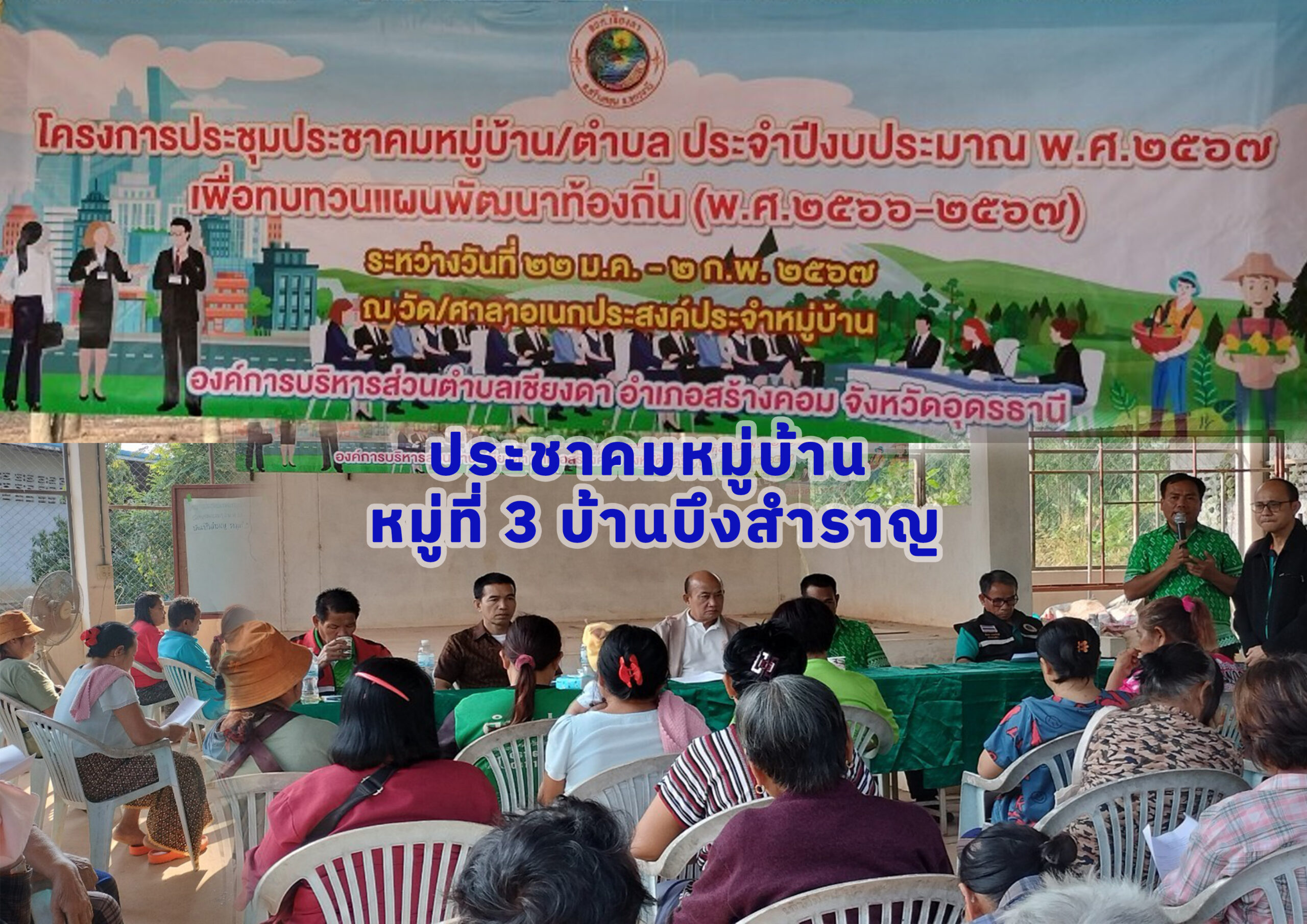Posted in กิจกรรมและโครงการต่างๆ วันที่ 31 มกราคม 2567 องค์การบริหารส่วนตำบลเชียงดา นำโดยท่านนายกมนู พันธ์ดง และคณะผู้บริหาร ท่านรองนายก ท่านเลขานุการนายก พร้อมทั้งคณะกรรมการพัฒนาองค์การบริหารส่วนตำบลเชียงดา ได้ออกประชาคมหมู่บ้าน หมู่ที่ 3 บ้านบึงสําราญ ณ ศาลาอเนกประสงค์ประจำหมู่บ้าน Admin