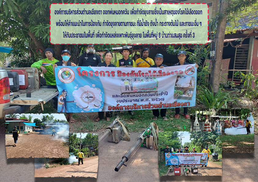 Posted in กิจกรรมและโครงการต่างๆ วันที่ 20 พฤษภาคม 2567 นักป้องกันและบรรเทาสาธารณภัย ผู้ช่วยเจ้าพนักงานสาธารณสุข และพนักงานอบต.เชียงดา ร่วมด้วยเจ้าหน้าที่จาก รพ.สต.เชียงดา อสม. ได้ออกพ่นยาป้องกันและควบคุมโรคไข้เลือดออก ที่ หมู่8 บ้านท่าแสนสุข ครั้งที่ 3 Admin