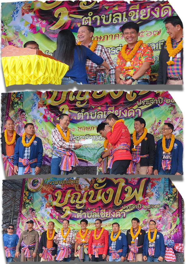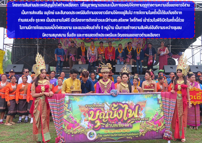 Posted in กิจกรรมและโครงการต่างๆ วันที่ 31 พฤษภาคม พ.ศ. 2567 องค์การบริหารส่วนตำบลเชียงดา นำโดย นายมนู พันธ์ดง นายก อบต.เชียงดา คณะผู้บริหาร เจ้าหน้าที่พนักงาน อบต.เชียงดา สมาชิกสภาอบต.เชียงดา กำนัน/ผู้ใหญ่บ้าน ได้จัดทำโครงการสืบสานประเพณีบุญบั้งไฟตำบลเชียงดา Admin