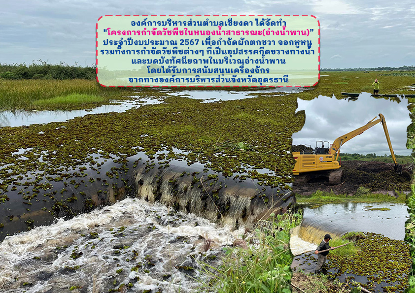 Posted in กิจกรรมและโครงการต่างๆ องค์การบริหารส่วนตำบลเชียงดา ได้จัดทำ “โครงการกำจัดวัชพืชในหนองน้ำสาธารณะ(อ่างน้ำพาน)” ประจำปีงบประมาณ 2567 เพื่อกำจัดผักตกชวา จอกหูหนู โดยได้รับการสนับสนุนเครื่องจักร จากทางองค์การบริหารส่วนจังหวัดอุดรธานี Admin