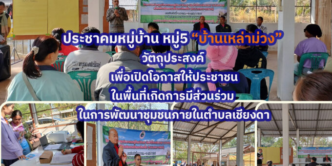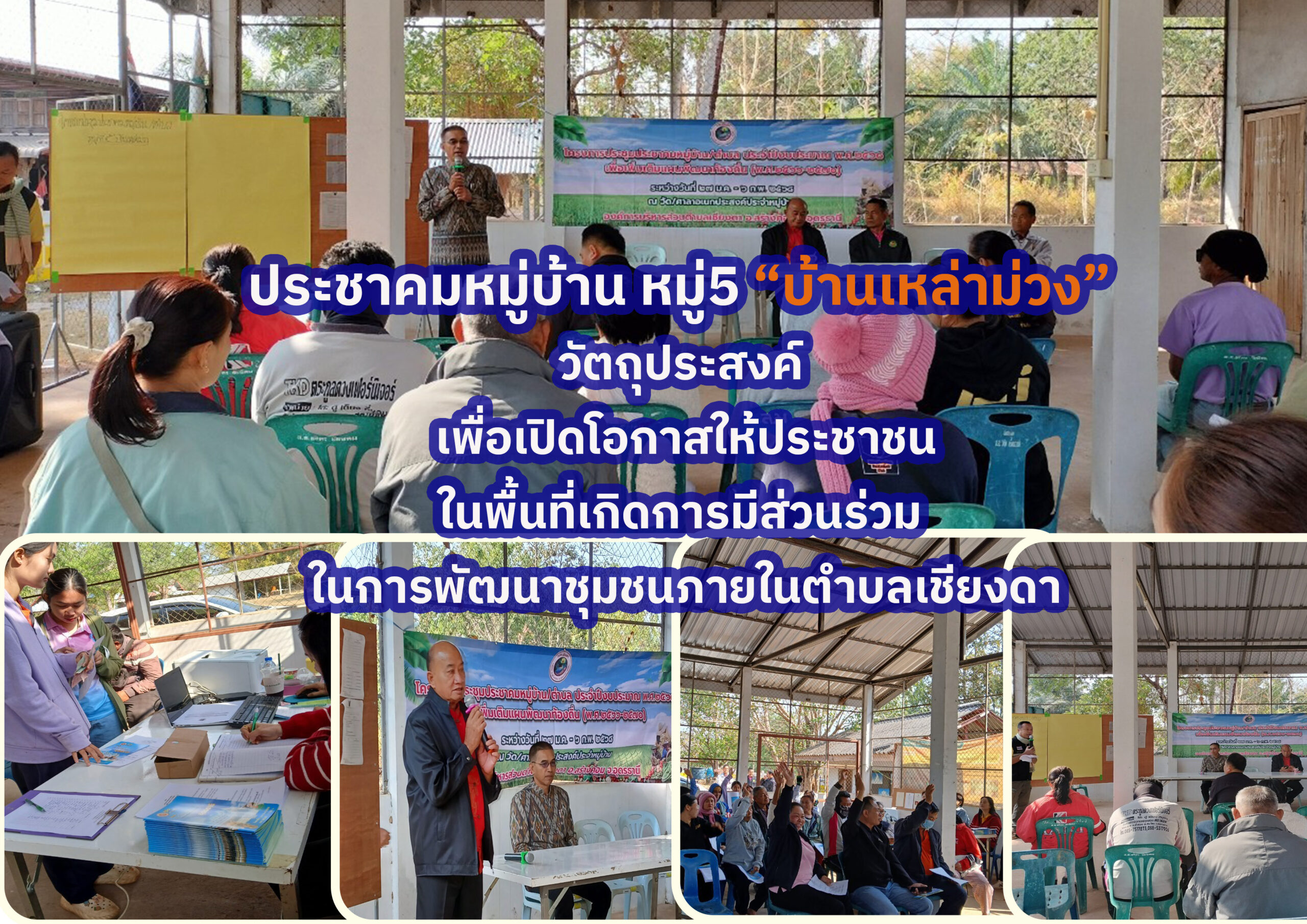 Posted in กิจกรรมและโครงการต่างๆ วันที่ 28 มกราคม 2568 องค์การบริหารส่วนตำบลเชียงดา นำโดยท่านนายกมนู พันธ์ดง คณะผู้บริหาร ท่านรองนายก ท่านเลขานุการนายก พร้อมทั้งคณะกรรมการพัฒนาอบต.เชียงดา ได้ออกประชาคมหมู่บ้าน หมู่ที่5 บ้านเหล่าม่วง ณ ศาลาอเนกประสงค์ประจำหมู่บ้าน Admin