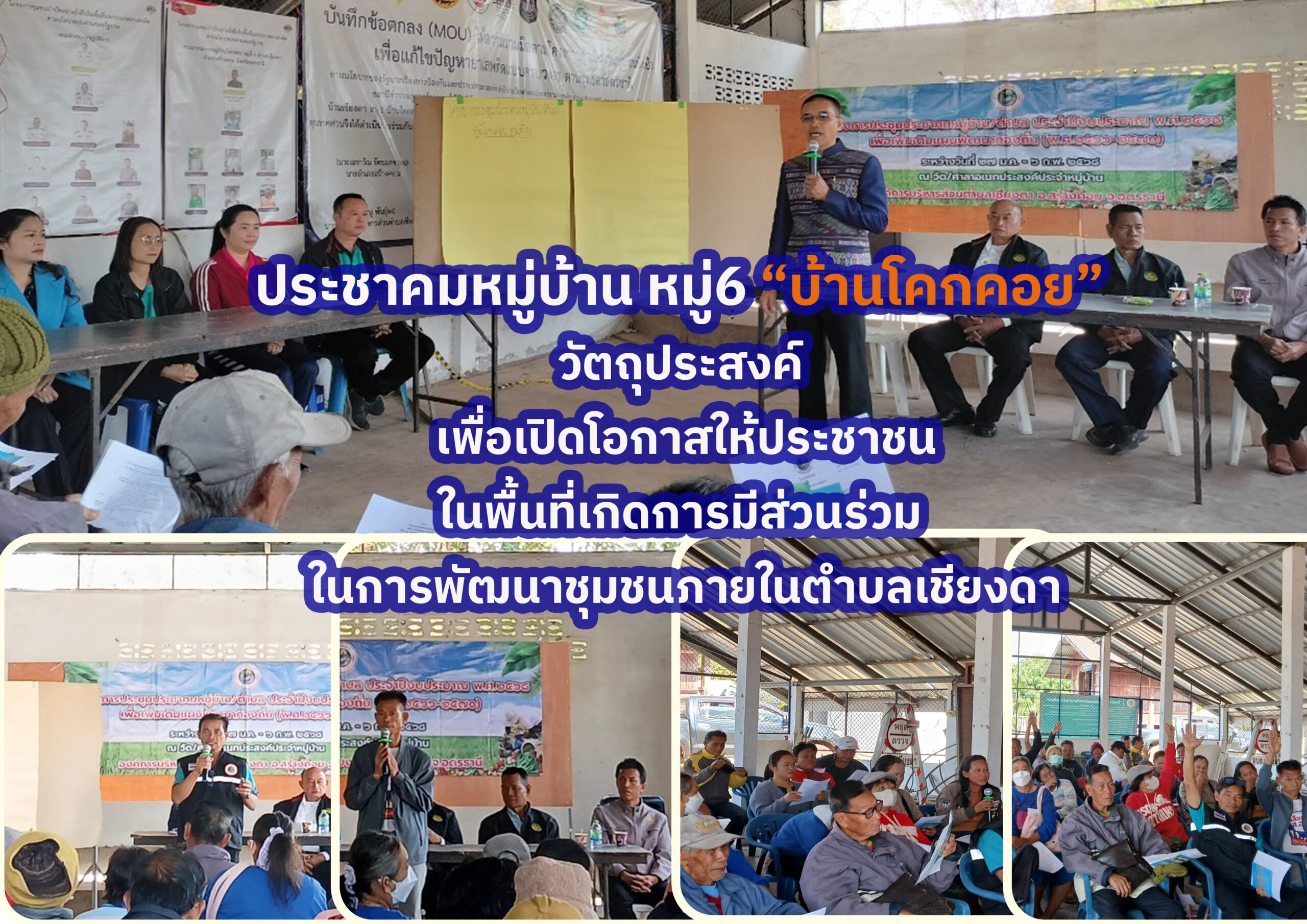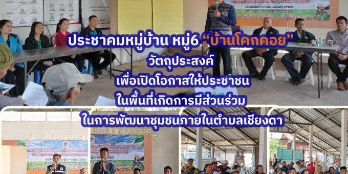 Posted in กิจกรรมและโครงการต่างๆ วันที่ 29 มกราคม 2568 องค์การบริหารส่วนตำบลเชียงดา นำโดยท่านนายกมนู พันธ์ดง และคณะผู้บริหาร ท่านรองนายก ท่านเลขานุการนายก พร้อมทั้งคณะกรรมการพัฒนาอบต.เชียงดา ได้ออกประชาคมหมู่บ้าน หมู่ที่6 บ้านโคกคอย ณ ศาลาอเนกประสงค์ประจำหมู่บ้าน Admin