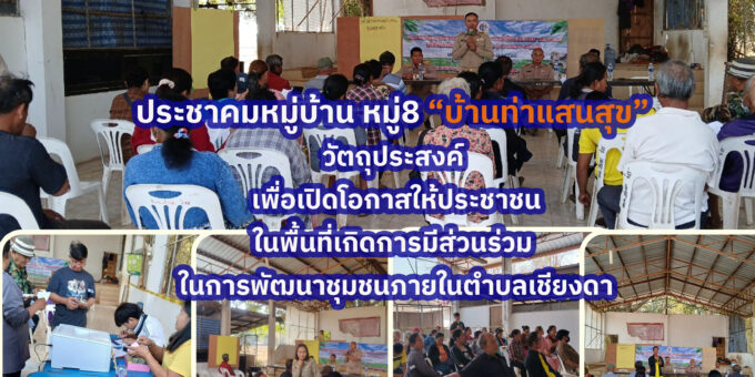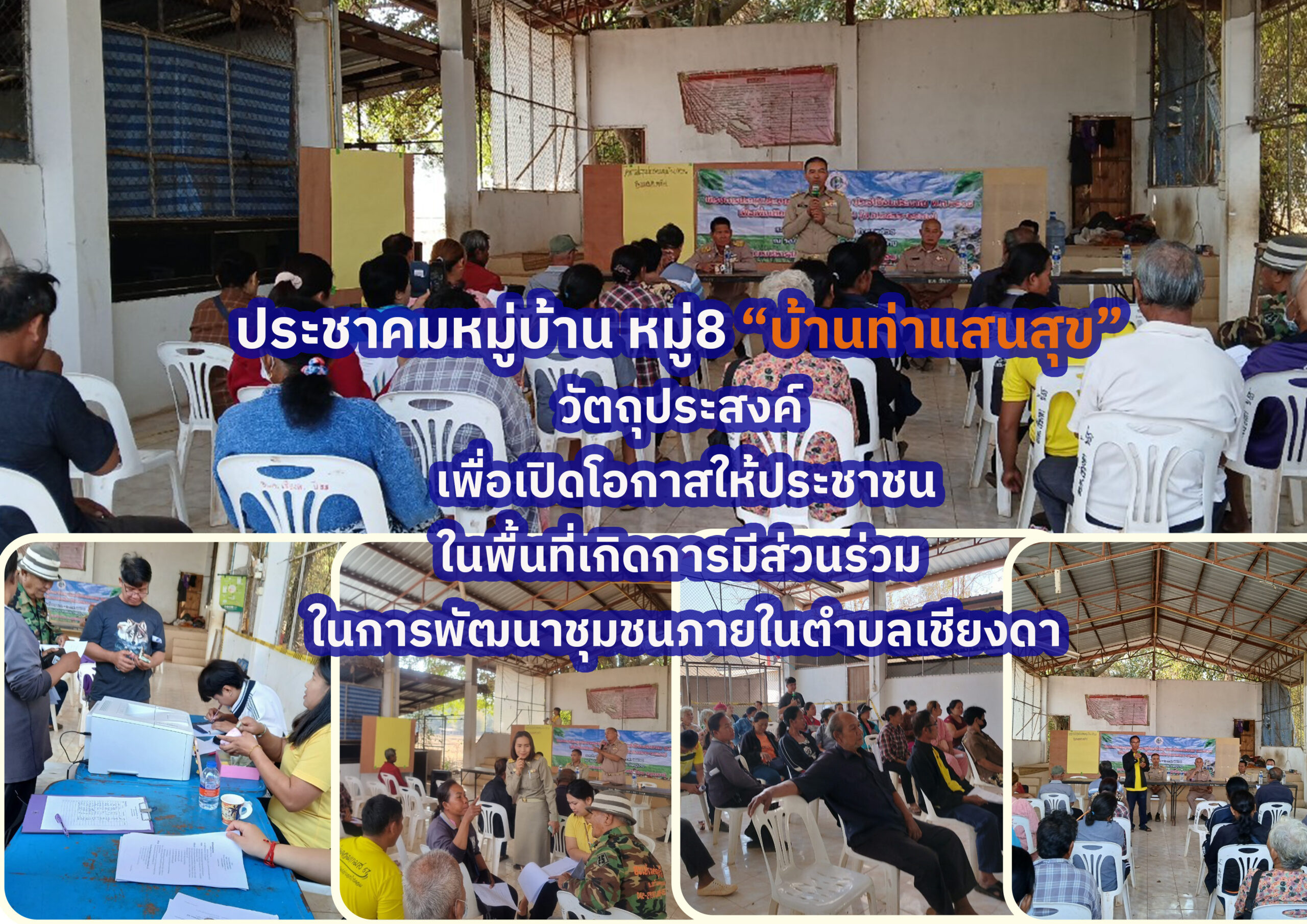 Posted in กิจกรรมและโครงการต่างๆ วันที่ 3 กุมภาพันธ์ 2568 องค์การบริหารส่วนตำบลเชียงดา นำโดยท่านนายกมนู พันธ์ดง และคณะผู้บริหาร ท่านรองนายก ท่านเลขานุการนายก พร้อมทั้งคณะกรรมการพัฒนาอบต.เชียงดา ได้ออกประชาคมหมู่บ้าน หมู่ที่8 บ้านท่าแสนสุข ณ ศาลาอเนกประสงค์ประจำหมู่บ้าน Admin