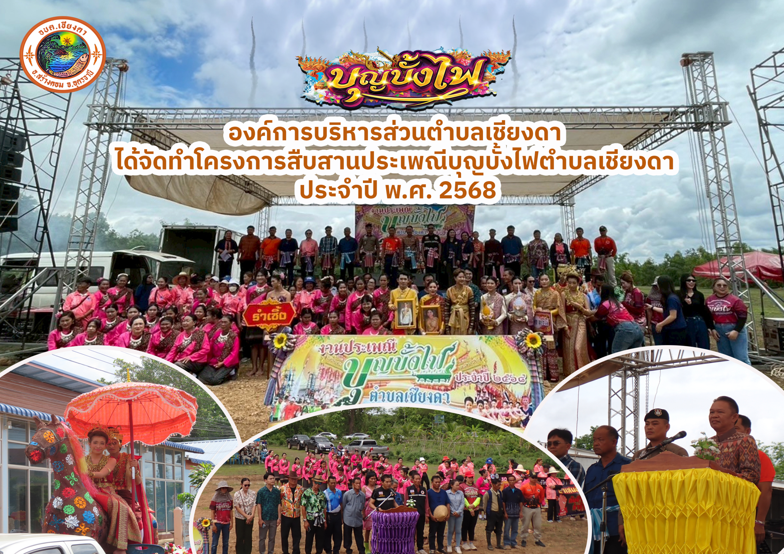 Posted in กิจกรรมและโครงการต่างๆ วันที่ 15 พฤษภาคม 2568 องค์การบริหารส่วนตำบลเชียงดานำโดยท่านนายยก มนู พันธ์ดง พร้อมด้วย คณะผู้บริหาร สมาชิกสภาตำบลเชียงดา พนักงาน ลูกจ้าง องค์การบริหารส่วนตำบลเชียงดาและผู้นำหมู่บ้านในตำบลเชียงดา ได้ดำเนินโครงการประเพณีบุญบั้งไฟตำบลเชียงดา ประจำปี 2568 โดยมีท่าน เอราวัณ รัตนเดชอุดม นายอำเภอสร้างคอม ให้เกียรติเป็นประธานพิธีเปิดงาน Admin