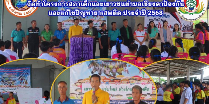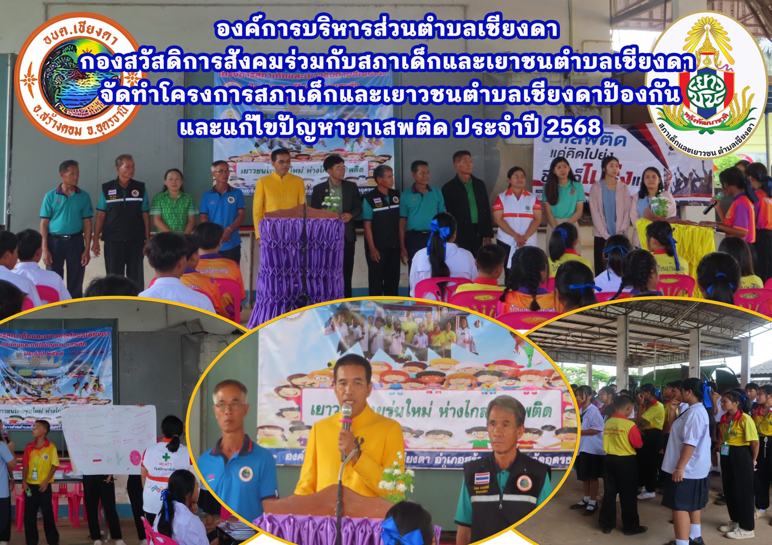 Posted in กิจกรรมและโครงการต่างๆ วันที่ 25 มิถุนายน 2568 กองสวัสดิการสังคมร่วมกับสภาเด็กและเยาชนตำบลเชียงดา จัดทำโครงการ สภาเด็กและเยาวชนตำบลเชียงดาป้องกันและแก้ไขปัญหายาเสพติด ประจำปี 2568 Admin