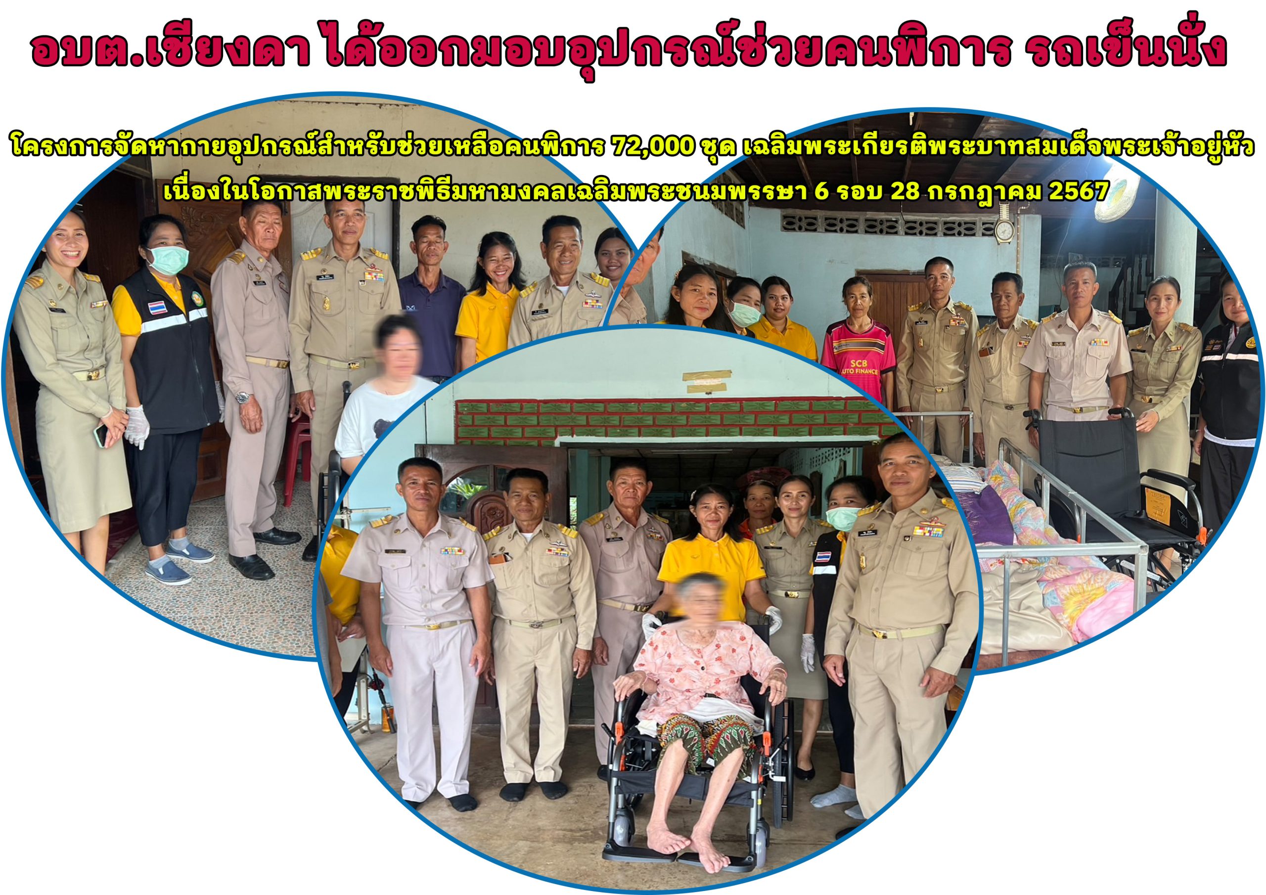 Posted in กิจกรรมและโครงการต่างๆ วันที่ 18 สิงหาคม 2568 นำโดยนายมนู พันธ์ดง นายก อบต.เชียงดา คณะผู้บริหาร พนักงาน อบต.เชียงดา กองสวัสดิการสังคมและบริบาล ได้ออกมอบอุปกรณ์ช่วยคนพิการ รถเข็นนั่ง (Whell chair) โครงการจัดหากายอุปกรณ์สำหรับช่วยเหลือคนพิการ 72,000 ชุด เฉลิมพระเกียรติพระบาทสมเด็จพระเจ้าอยู่หัว เนื่องในโอกาสพระราชพิธีมหามงคลเฉลิมพระชนมพรรษา 6 รอบ 28 กรกฎาคม 2567 Admin