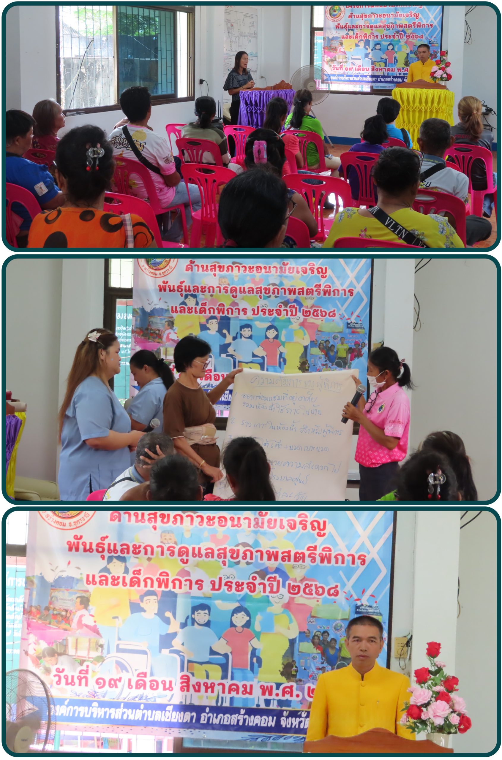 Posted in กิจกรรมและโครงการต่างๆ วันที่19 สิงหาคม 2568 นำโดยนายมนู พันธ์ดง นายก อบต.เชียงดา คณะผู้บริหาร เจ้าหน้าที่พนักงานอบต.เชียงดา สมาชิกสภาอบต.เชียงดา ร่วมกับหน่วยงานสาธารณสุขจัดทำโครงการฝึกอบรมให้ความรู้ด้านสุขภาวะอนามัยเจริญพันธุ์ และการดูแลสุขภาพสตรีพิการและเด็กพิการ ประจำปี 2568 Admin
