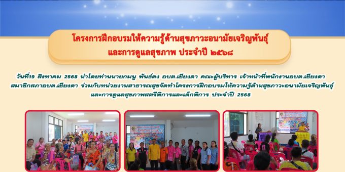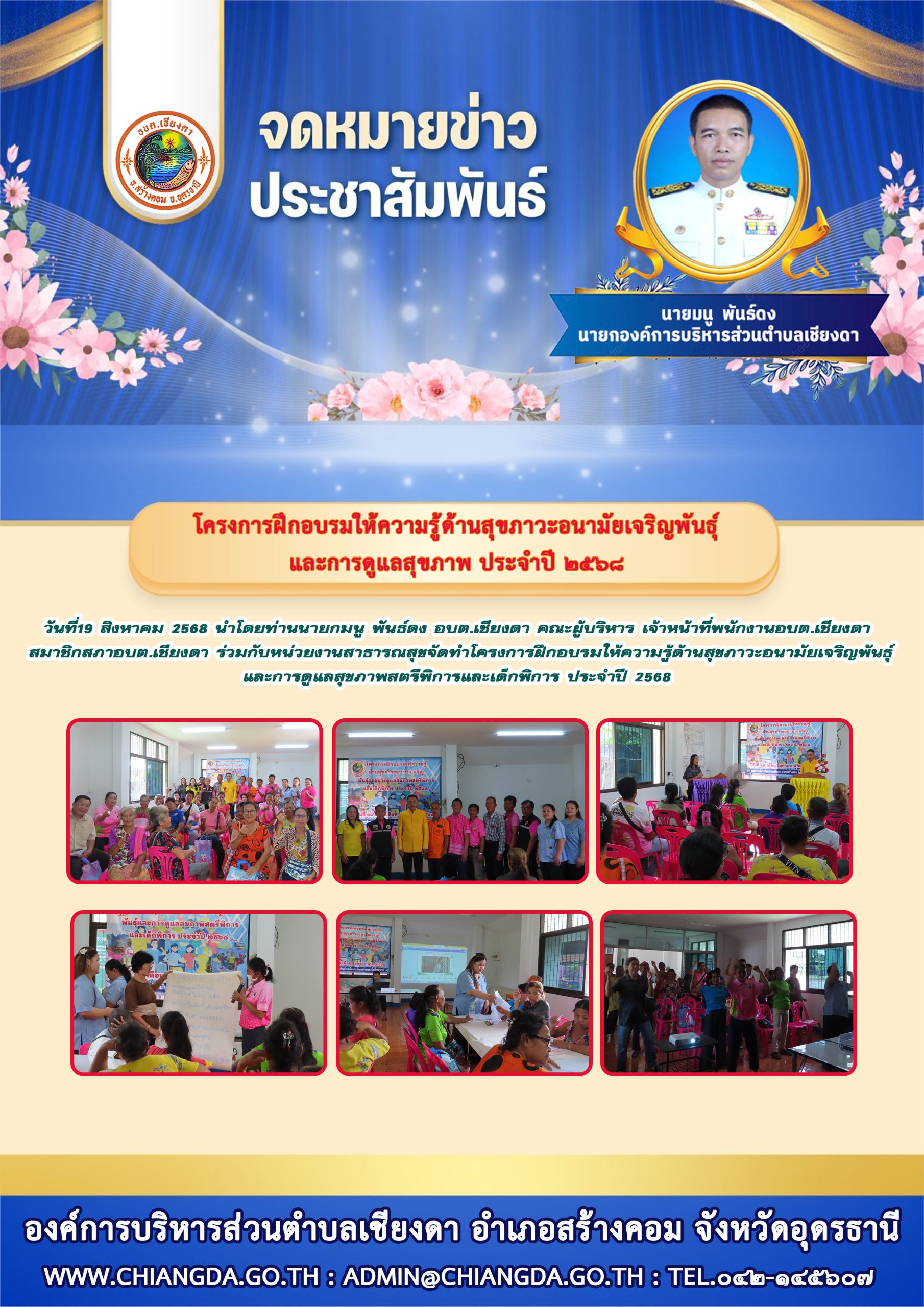 Posted in จดหมายข่าวประชาสัมพันธ์ วันที่19 สิงหาคม 2568 นำโดยนายมนู พันธ์ดง นายก อบต.เชียงดา คณะผู้บริหาร เจ้าหน้าที่พนักงานอบต.เชียงดา สมาชิกสภาอบต.เชียงดา ร่วมกับหน่วยงานสาธารณสุขจัดทำโครงการฝึกอบรมให้ความรู้ด้านสุขภาวะอนามัยเจริญพันธุ์ และการดูแลสุขภาพสตรีพิการและเด็กพิการ ประจำปี 2568 Admin