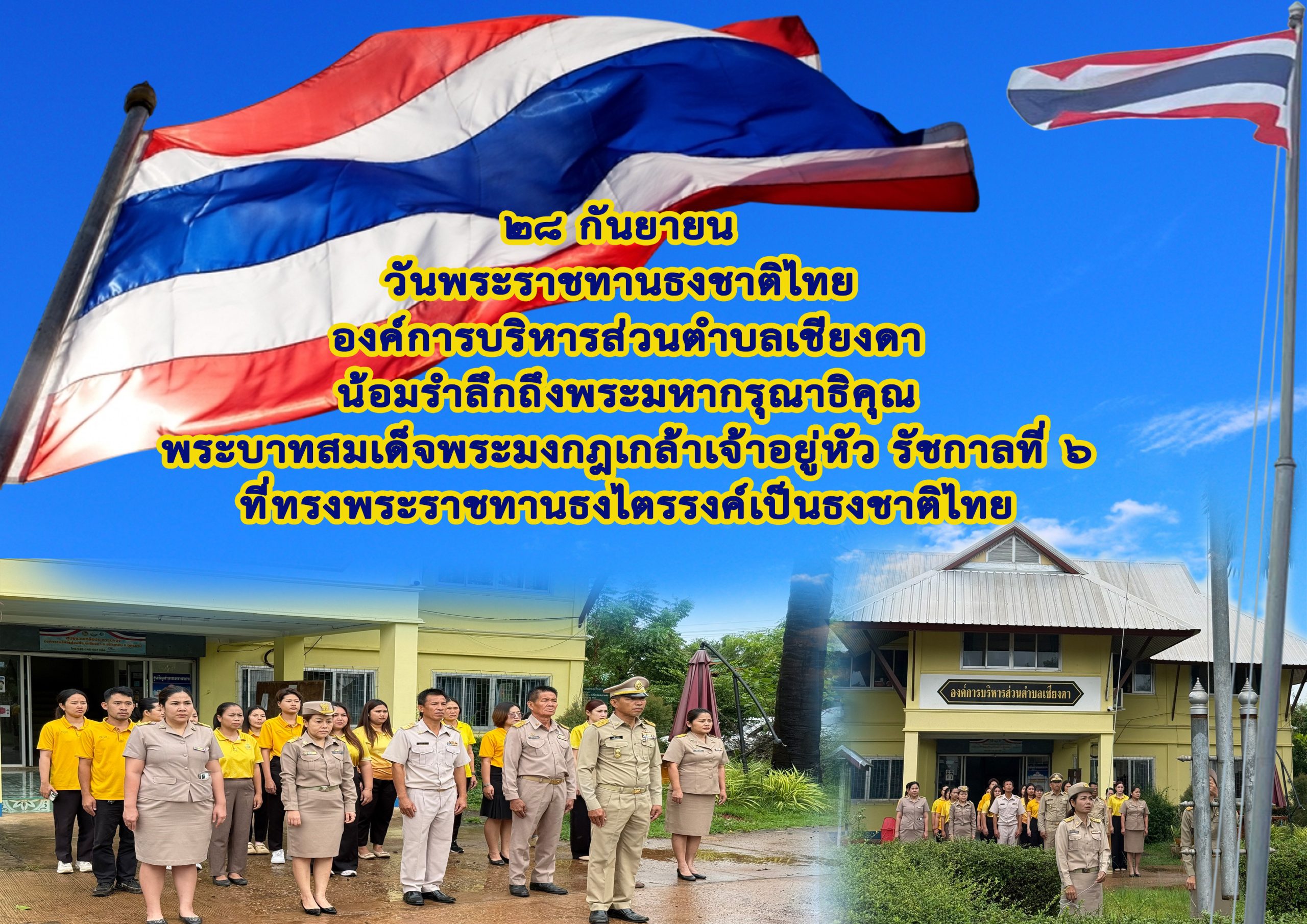 Posted in กิจกรรมและโครงการต่างๆ วันที่ 29 กันยายน 2568 นำโดยท่านนายกมนู พันธ์ดง คณะผู้บริหาร หัวหน้าส่วนราชการ และพนักงานอบต.เชียงดาได้เข้าร่วมทำกิจกรรมวันพระราชทานธงชาติไทย Admin