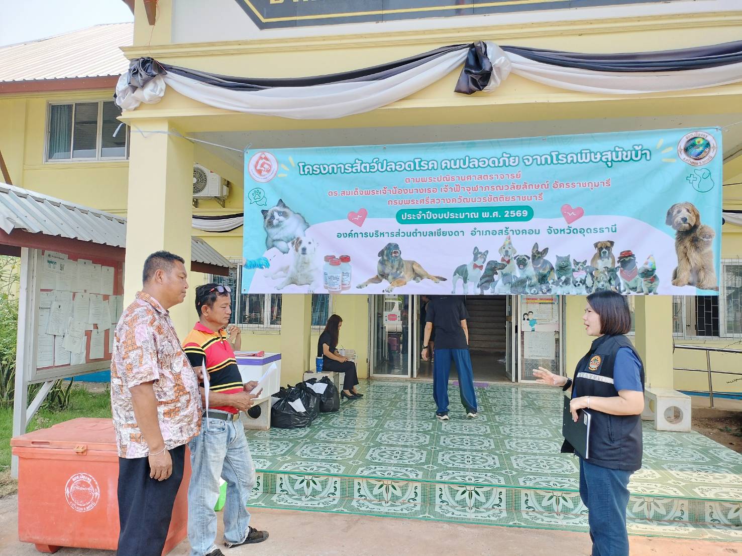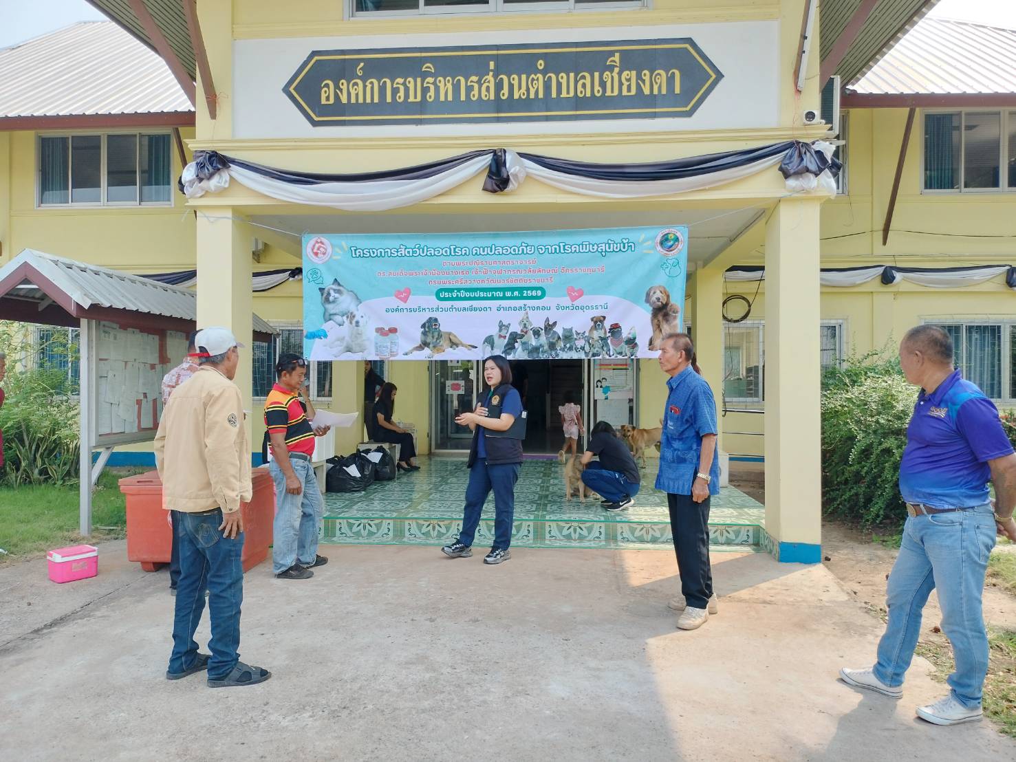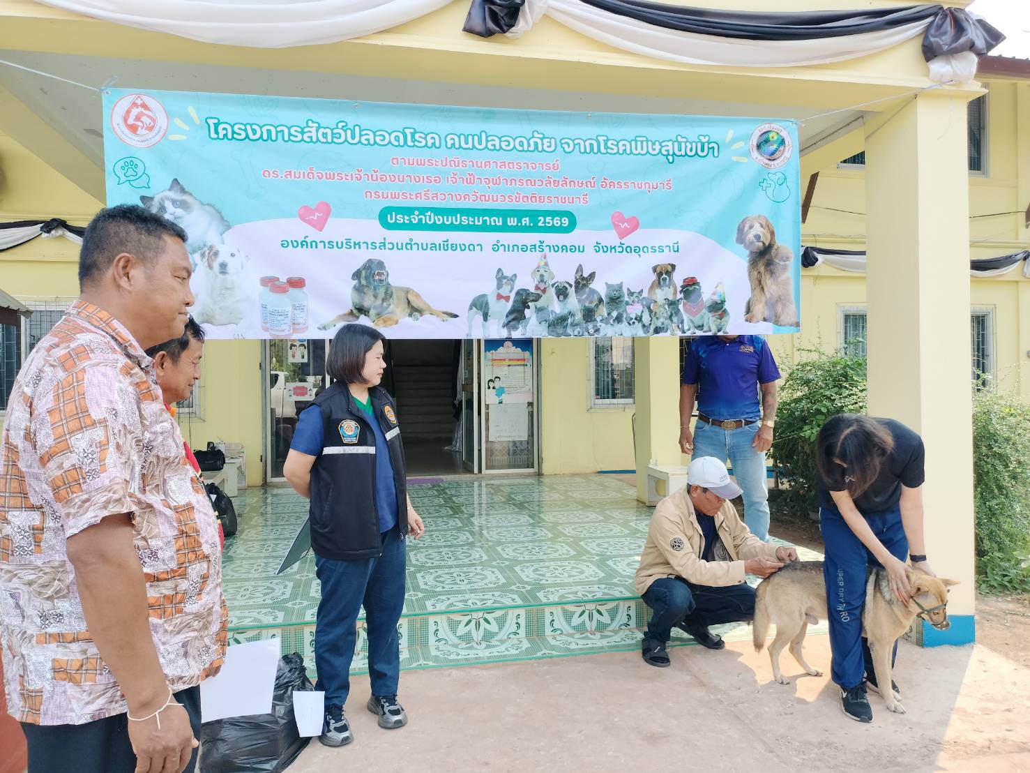 Posted in กิจกรรมและโครงการต่างๆ วันที่ 22 เมษายน 2569 องค์การบริหารส่วนตำบลเชียงดา นำโดยนายลือชัย ศรีต่างคำ คณะผู้บริหาร เจ้าหน้าที่ ร่วมกับปศุสัตว์อำเภอสร้างคอม ดำเนินโครงการสัตว์ปลอดโรค คนปลอดภัย จากโรคพิษสุนัขบ้า ตามพระปณิธานศาสตราจารย์ ดร.สมเด็จพระเจ้าน้องนางเธอ เจ้าฟ้าจุฬาภรณวลัยลักษณ์ อัครราชกุมารี กรมพระศรีสวางควัฒนวรขัตติยราชนารี ประจำปีงบประมาณ พ.ศ. 2569 ณ องค์การบริหารส่วนตำบลเชียงดา อำเภอสร้างคอม จังหวัดอุดรธานี ได้ร่วมดำเนินการฉีดวัคซีนป้องกันโรคพิษสุนัขบ้าแก่สัตว์เลี้ยงของประชาชน เพื่อป้องกันและควบคุมการแพร่ระบาดของโรค พิษสุนัขบ้า และสร้างความปลอดภัยให้กับประชาชนในพื้นที่ Admin
