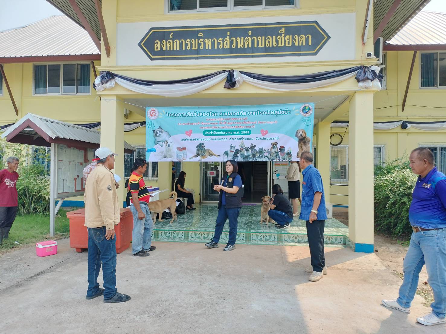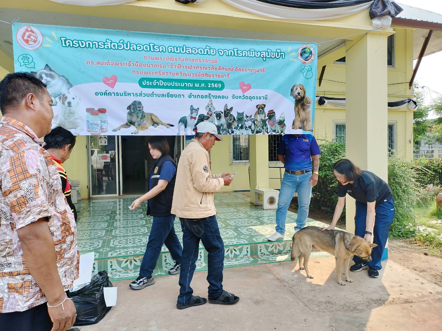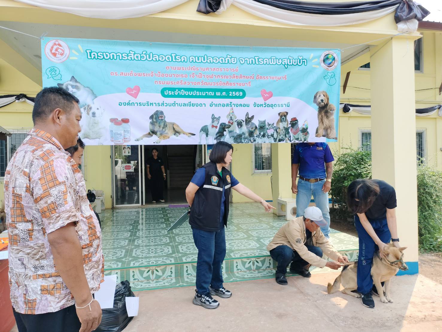 Posted in กิจกรรมและโครงการต่างๆ วันที่ 22 เมษายน 2569 องค์การบริหารส่วนตำบลเชียงดา นำโดยนายลือชัย ศรีต่างคำ คณะผู้บริหาร เจ้าหน้าที่ ร่วมกับปศุสัตว์อำเภอสร้างคอม ดำเนินโครงการสัตว์ปลอดโรค คนปลอดภัย จากโรคพิษสุนัขบ้า ตามพระปณิธานศาสตราจารย์ ดร.สมเด็จพระเจ้าน้องนางเธอ เจ้าฟ้าจุฬาภรณวลัยลักษณ์ อัครราชกุมารี กรมพระศรีสวางควัฒนวรขัตติยราชนารี ประจำปีงบประมาณ พ.ศ. 2569 ณ องค์การบริหารส่วนตำบลเชียงดา อำเภอสร้างคอม จังหวัดอุดรธานี ได้ร่วมดำเนินการฉีดวัคซีนป้องกันโรคพิษสุนัขบ้าแก่สัตว์เลี้ยงของประชาชน เพื่อป้องกันและควบคุมการแพร่ระบาดของโรค พิษสุนัขบ้า และสร้างความปลอดภัยให้กับประชาชนในพื้นที่ Admin