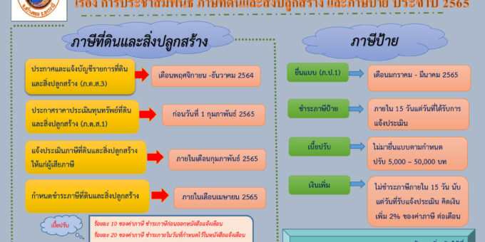 Posted in กิจกรรมและโครงการต่างๆ ประกาศ เรื่อง การประชาสัมพันธ์ ภาษีที่ดินและสิ่งปลูกสร้าง และภาษีป้าย ประจำปี 2565 Admin