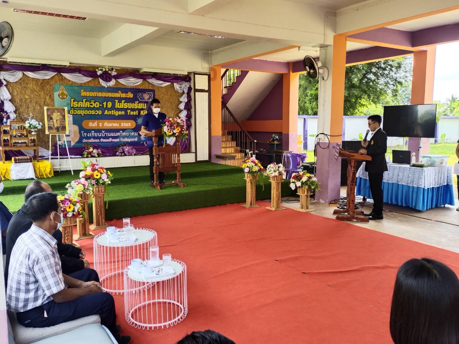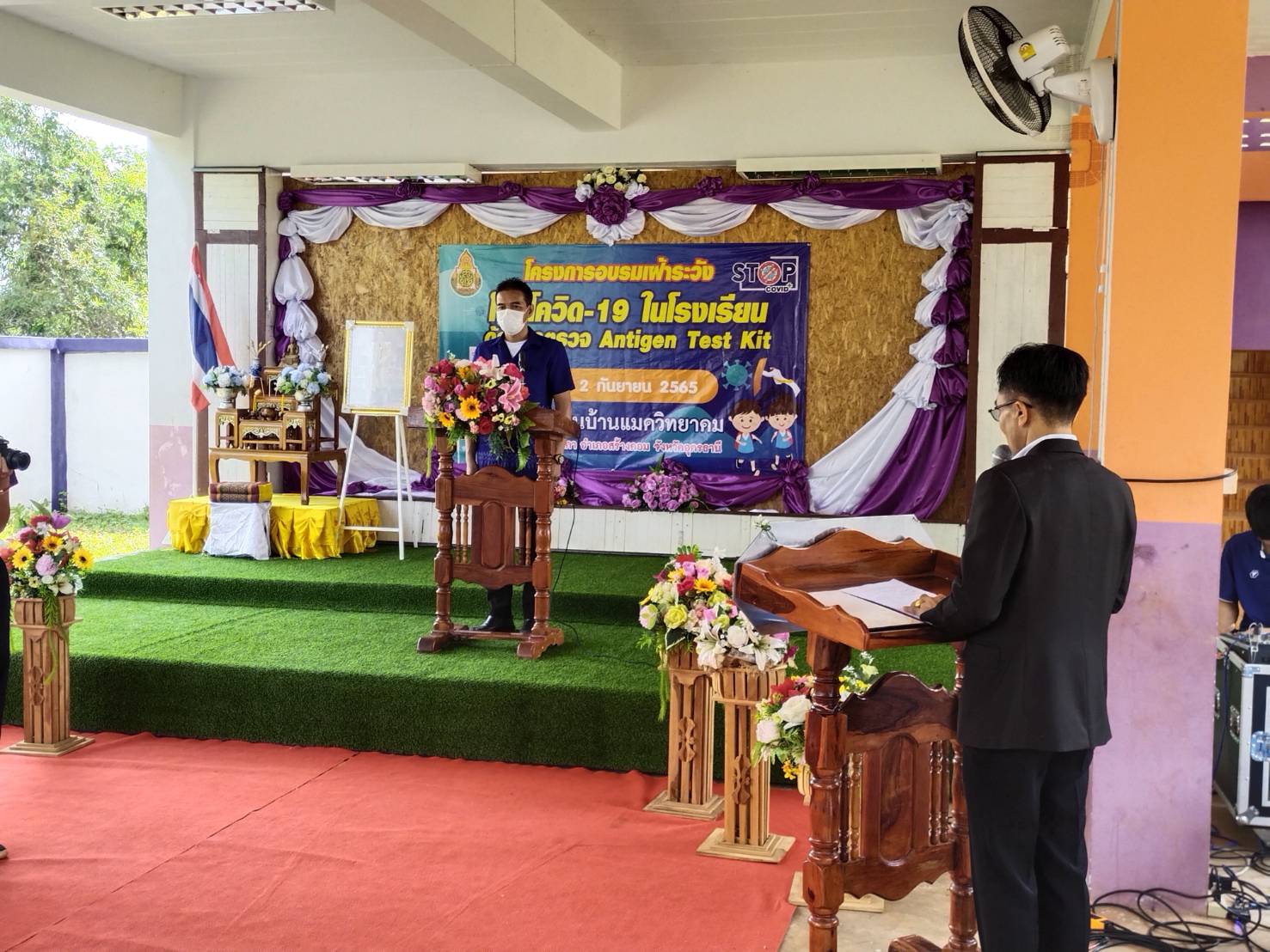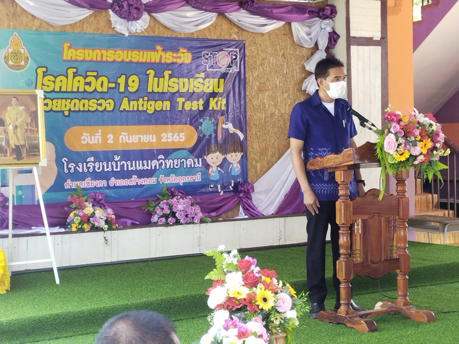 Posted in กิจกรรมและโครงการต่างๆ วันที่ 2 กันยายน 2565 นำโดยท่านนายกมนู พันธ์ดง พร้อมทั้งคณะผู้บริหาร ได้เข้าร่วมเป็นประธานพิธีเปิดโครงการอบรมเฝ้าระวังโรคโควิด – 19 ในโรงเรียนด้วยชุดตรวจ Antigen Test Kit ณ โรงเรียนบ้านแมดวิทยาคม Admin