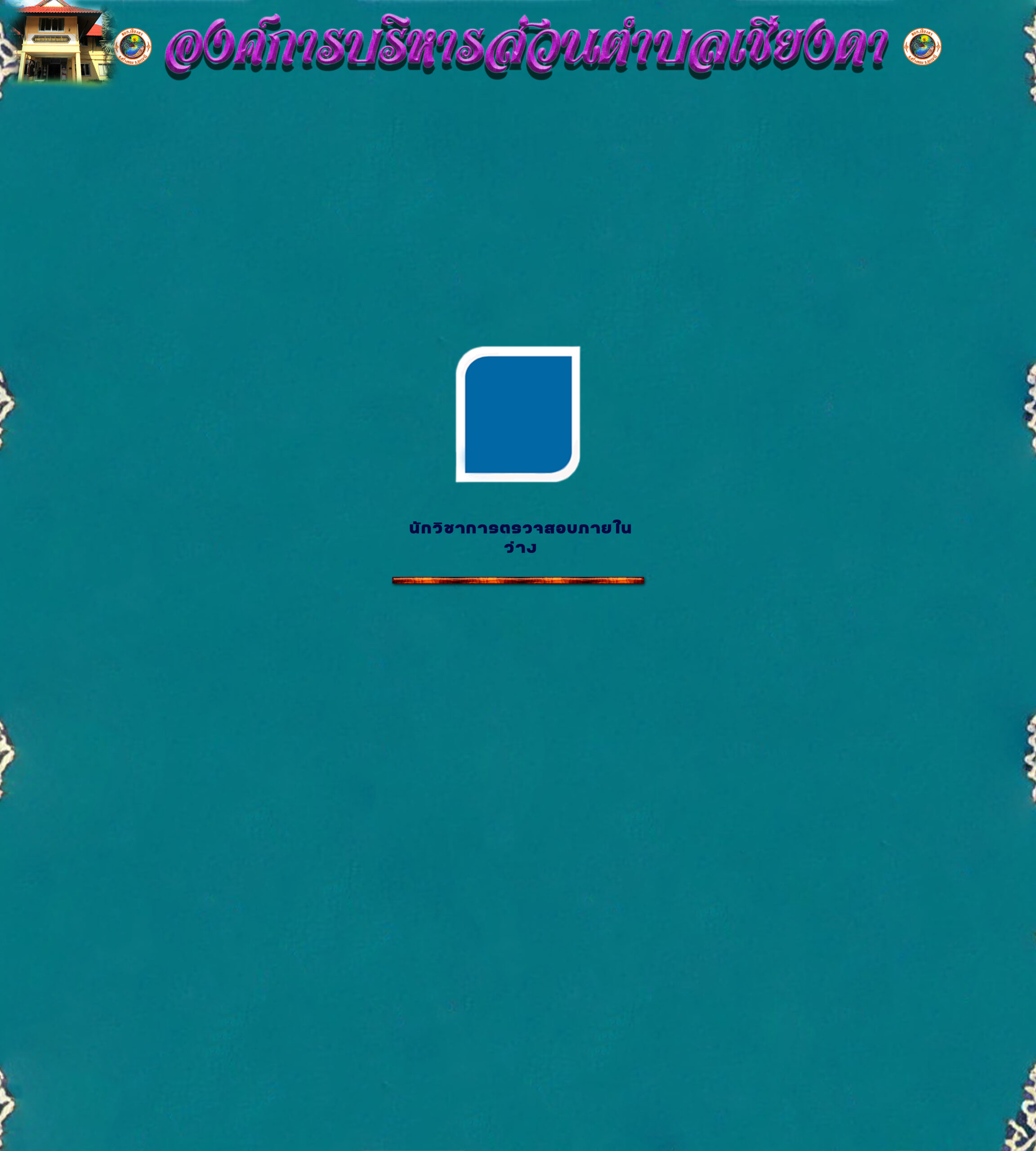 27-11-2568 ประกาศองค์การบริหารส่วนตำบลเชียงดา เรื่อง บัญชีรายการที่ดินและสิ่งปลูกสร้าง ประจำปี 2568 20-11-2568 ประชาสัมพันธ์โครงการเสริมสร้างสุขภาพเชิงรุกและลดภาวะคลอดก่อนกำหนด จัดทำโดย บริษัท ทรูวิชั่น กรุ๊ป จำกัด 11-11-2568 ประกาศ เรื่อง รายงานการรับ-จ่ายเงินประจำปีงบประมาณ พ.ศ.๒๕๖๘ 07-11-2568 วันที่ 7 พฤศจิกายน 2568 นำโดยนายมนู พันธ์ดง นายกอบต.เชียงดา นายสมัย อ่อนโก๊กและนายลี อ่อนโก้ก รองนายกอบต.เชียงดา และกองสวัสดิการสังคม ลงพื้นที่สอบข้อเท็จจริงสภาพครอบครัวของคนพิการที่ยื่นขอรับการปรับสภาพแวดล้อมที่อยู่อาศัย 29-10-2568 วันที่28 ตุลาคม 2568 เจ้าหน้าที่เหล่ากาชาดจังหวัดอุดรธานีลงพื้นที่ ร่วมเป็นกำลังใจมอบเงินและสิ่งของให้กับผู้ประสบเหตุอัคคีภัยโดยมีนายเอราวัณ รัตนเดชอุดม นายอำเภอสร้างคอมพร้อมด้วยนายก อบต.เชียงดา กำนัน ผู้ใหญ่บ้าน เจ้าหน้าที่ และส่วนที่เกี่ยวข้องร่วมมอบสิ่งของและให้กำลังใจ
