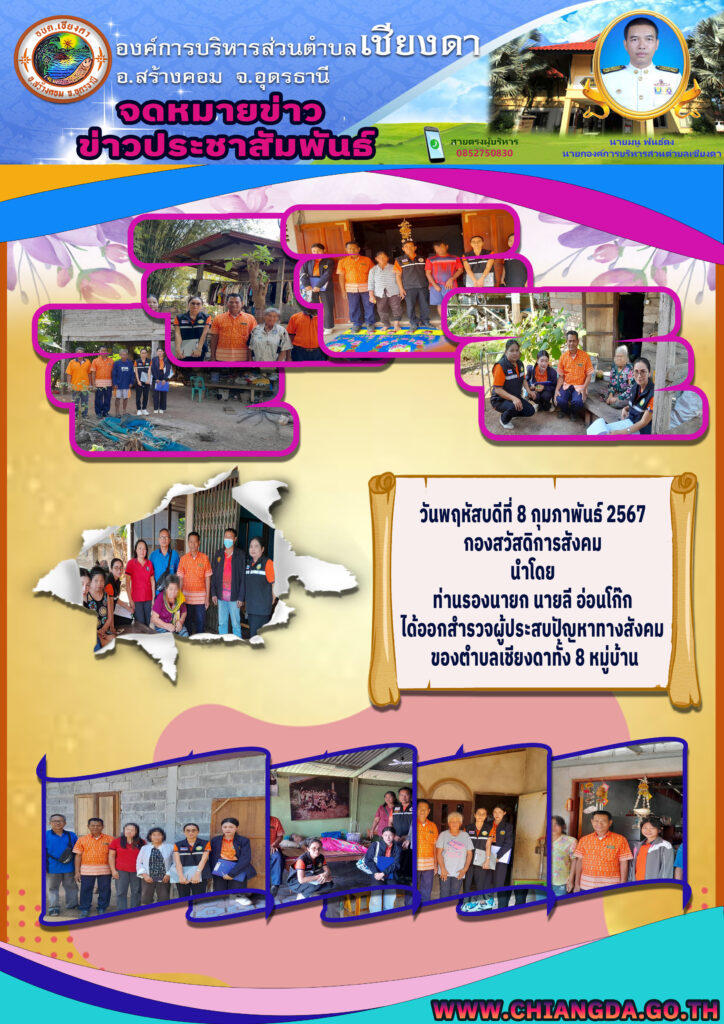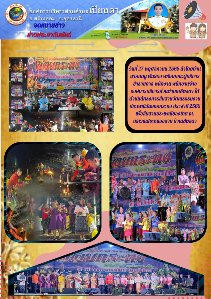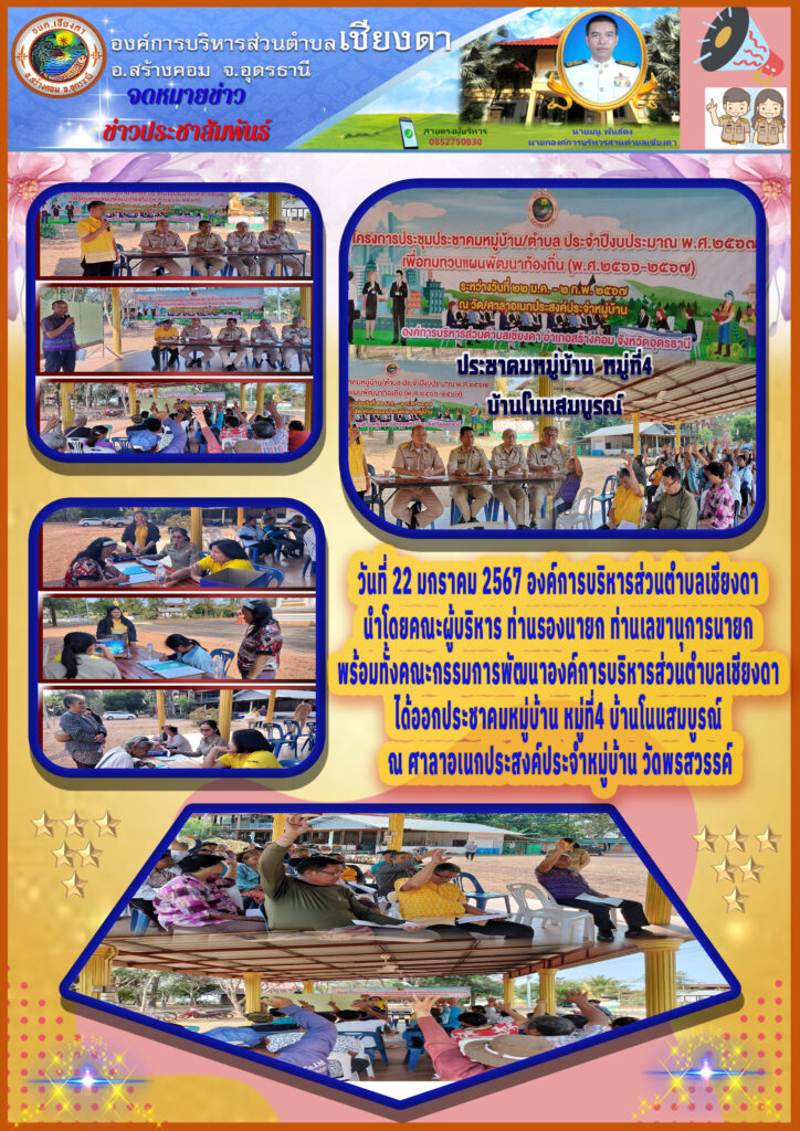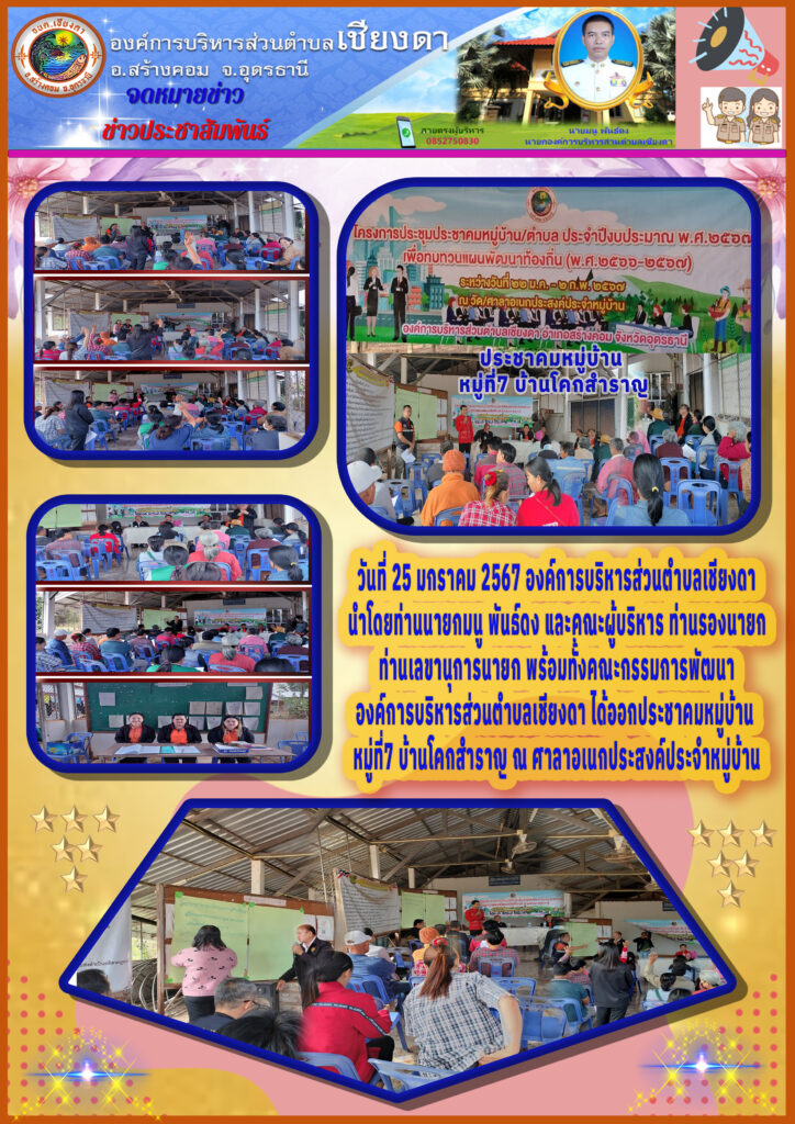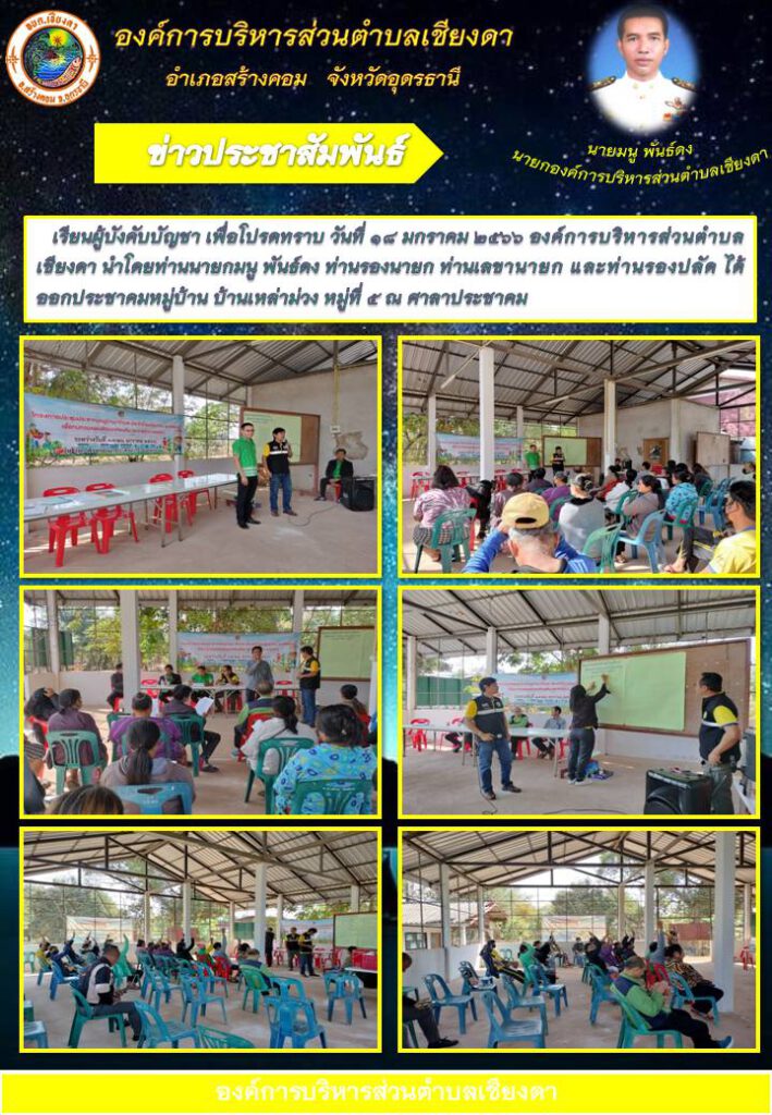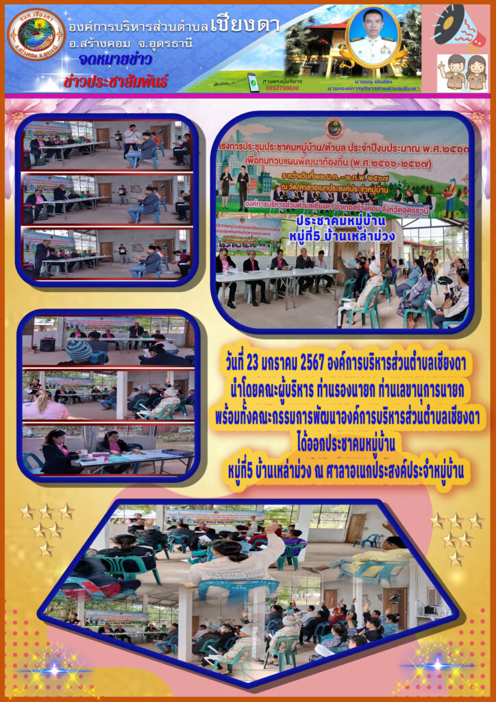 วันที่ 9 กุมภาพันธ์ 2566 เวลา 08.00 น. นำโดยท่านนายกมนู พันธ์ดง คณะผู้บริหาร ผู้นำชุมชน ผู้แทนพัฒนาการอำเภอสร้างคอม ผู้แทนปศุสัตว์อำเภอสร้างคอม ผู้แทนเกษตรอำเภอสร้างคอม และพนักงานอบต.เชียงดา ได้ดำเนินโครงการประชุมประชาคมตำบลเชียงดา เพื่อทบทวนแผนพัฒนาท้องถิ่น(พ.ศ.2566 – 2570) ณ หอประชุมองค์การบริหารส่วนตำบลเชียงดา