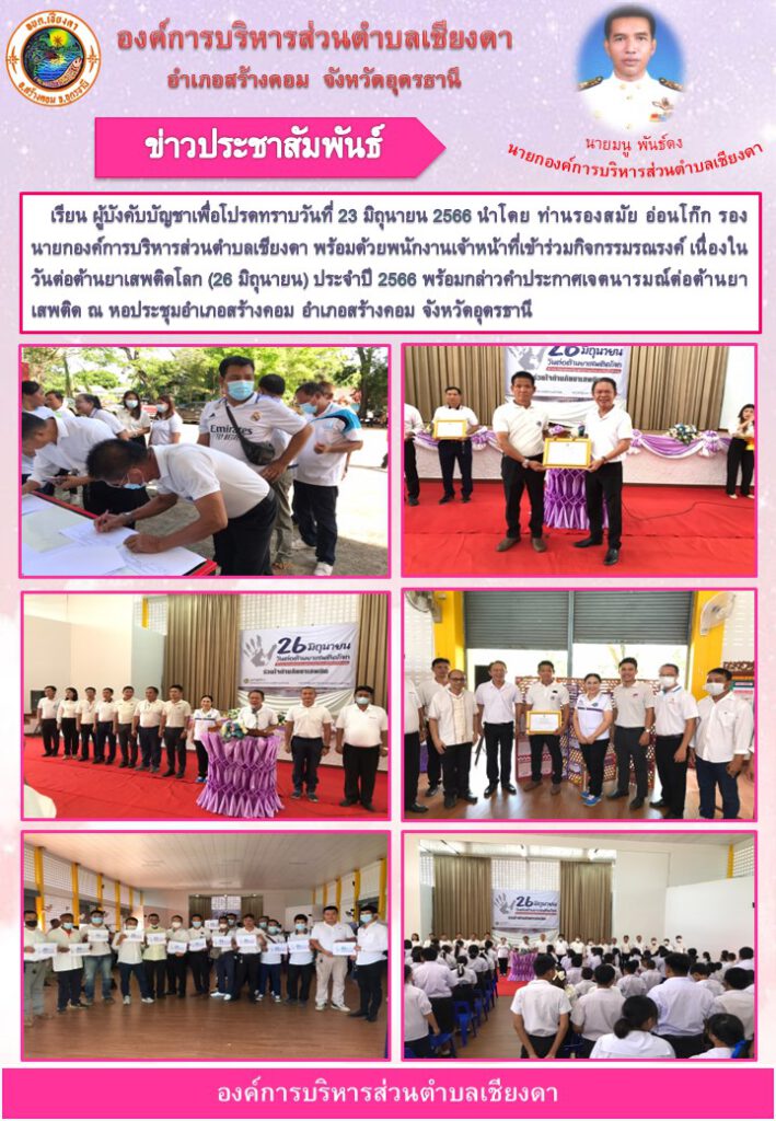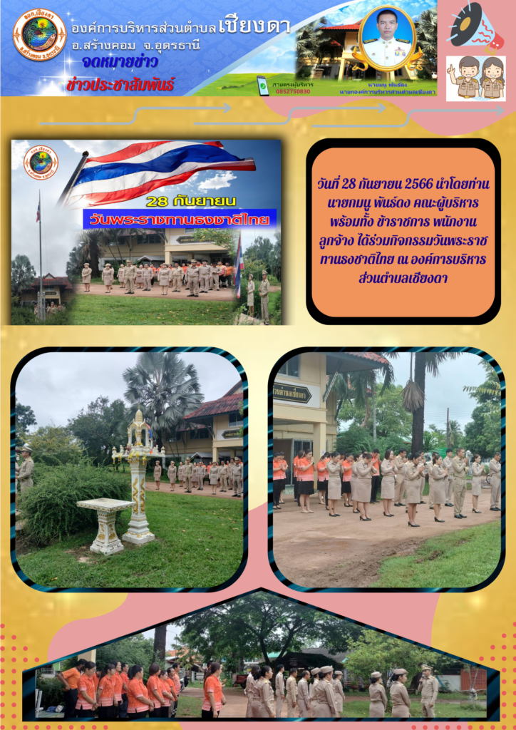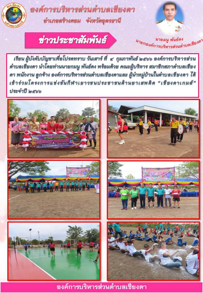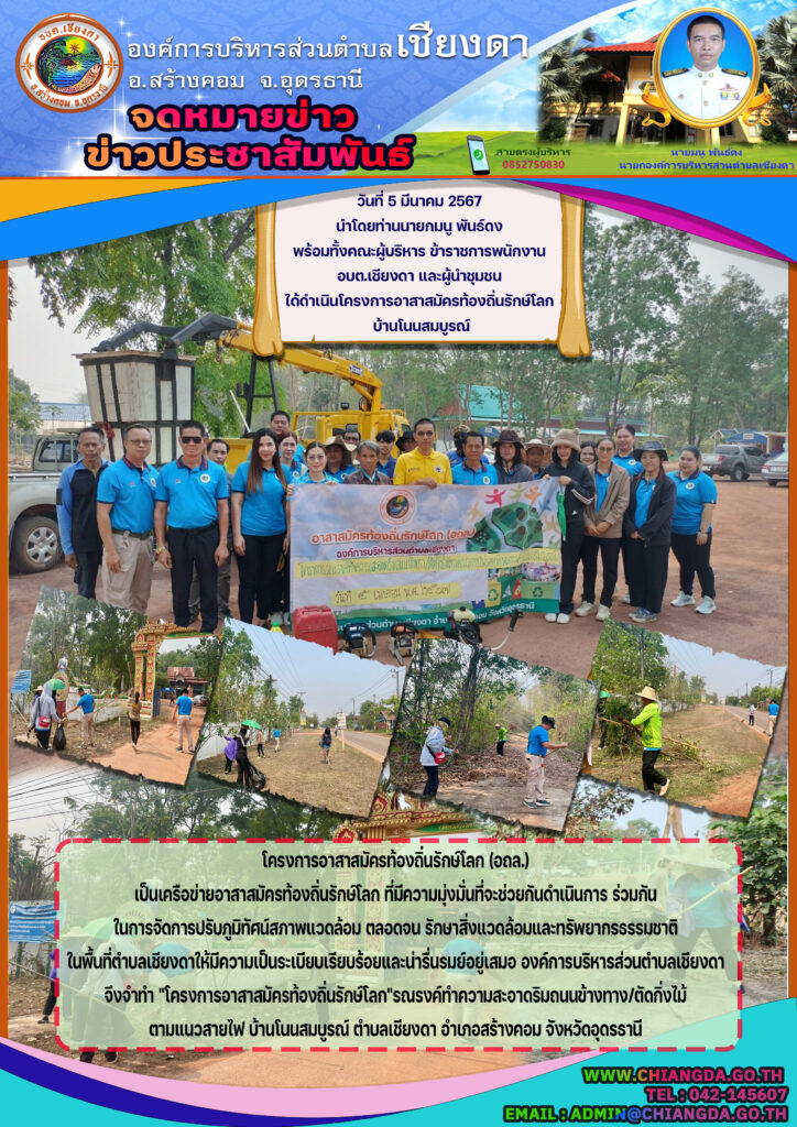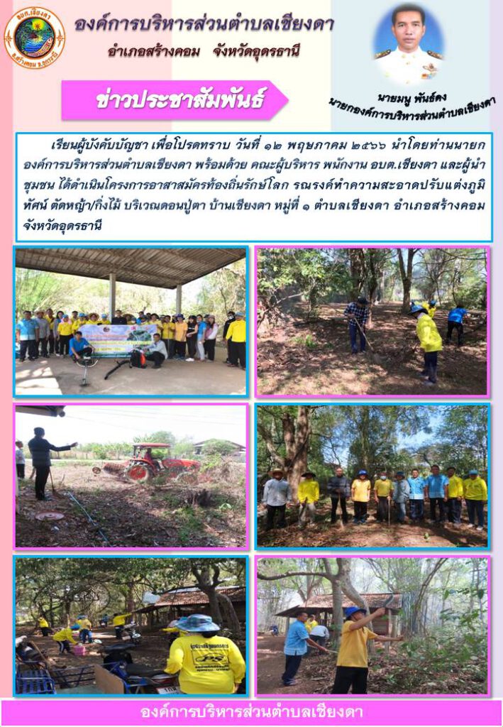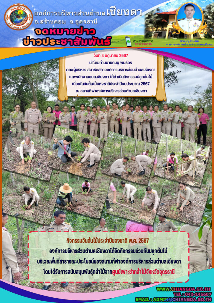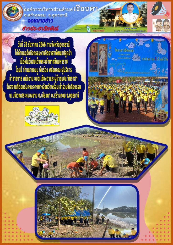 วันที่ 28 ธันวาคม 2566 ทางจังหวัดอุดรธานีได้กำหนดจัดกิจกรรมงานจิตอาสาพัฒนาปลูกป่า เนื่องในวันสมเด็จพระเจ้าตากสินมหาราช โดยมี ท่านนายกมนู พันธ์ดง พร้อมคณะผู้บริหาร ข้าราชการ พนักงาน อบต.เชียงดาและผู้นำชุมชน จิตอาสา จัดสถานที่ตอนรับคณะจากทางจังหวัดพร้อมเข้าร่วมจัดกิจกรรม ณ บริเวณสระหนองขาม ต.เชียงดา อ.สร้างคอม จ.อุดรธานี